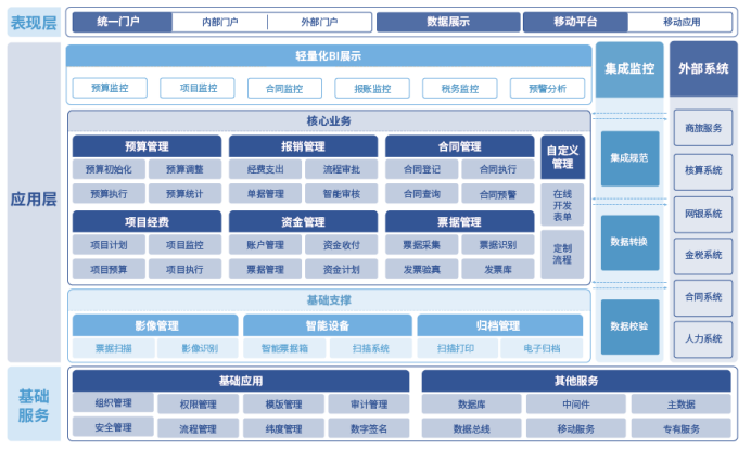 ??財金管控系統是為適應集團化企業“戰略管控”、“財務管控”、“業務管控”的管理模式的現狀研發的產品,擁有“高可用、高擴展、高易用”的產品特色,將移動互聯、人工智能、大數據技術與財務信息化經驗(系統功能、安全保密、模塊劃分、業務需求等)積累充分結合,為企業提供符合自身業務特點的開放型財務共享服務平臺。